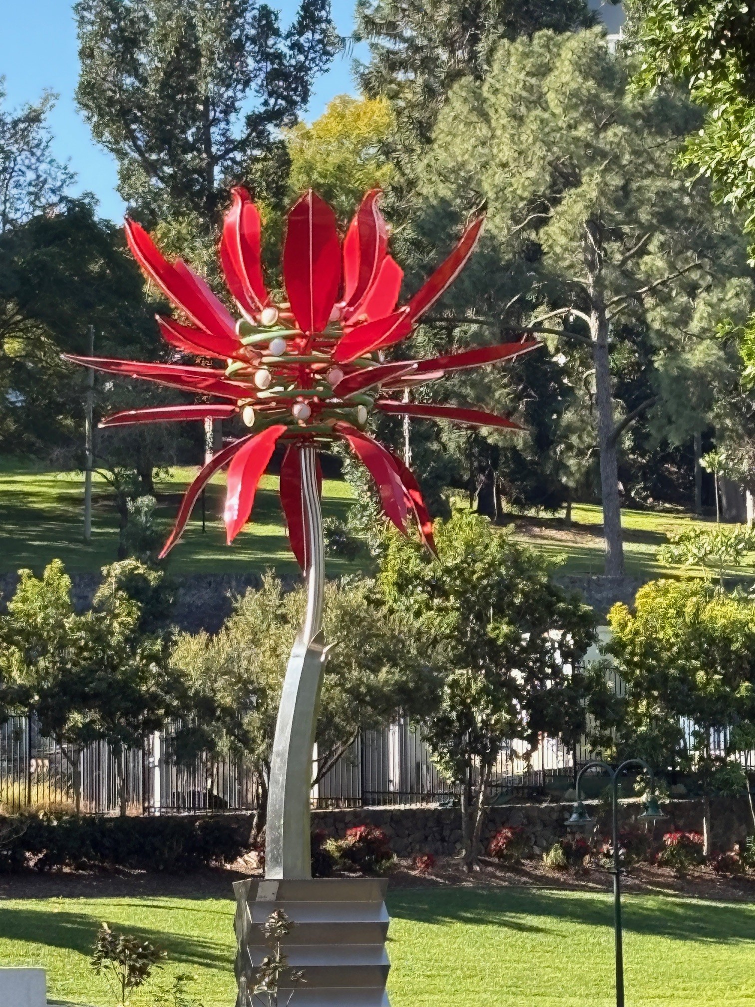 I enjoyed walking around and stopping on Brisbane’s bridges. They are modern and elegant, and as they cross the river that winds through the heart of the city, they offer unexpected angles and light. From my hotel on the South Bank, I had to cross a bridge to get to King George Square and Brisbane City Hall. The first stone of this impressive monument, combining the pediment of the Rome’s Pantheon and the Campanile of St. Mark’s in Venice, was laid in 1917. Undoubtedly inspired by the English imperial taste for “Pomp and Circumstance,” the building stands out a little from the rest of the city, which has a much more contemporary style. I went inside and visited the Museum of Brisbane. Unfortunately, there were no more tickets available to go up the tower and see the clock mechanism.